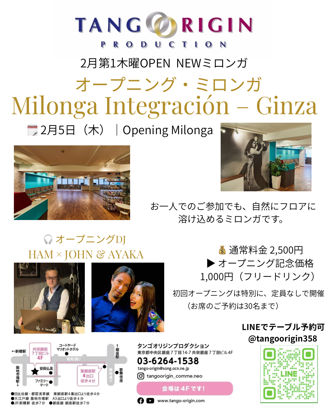 ・Milonga ¥3,000 ( 1ドリンク付き ※ 2杯目 ¥500)