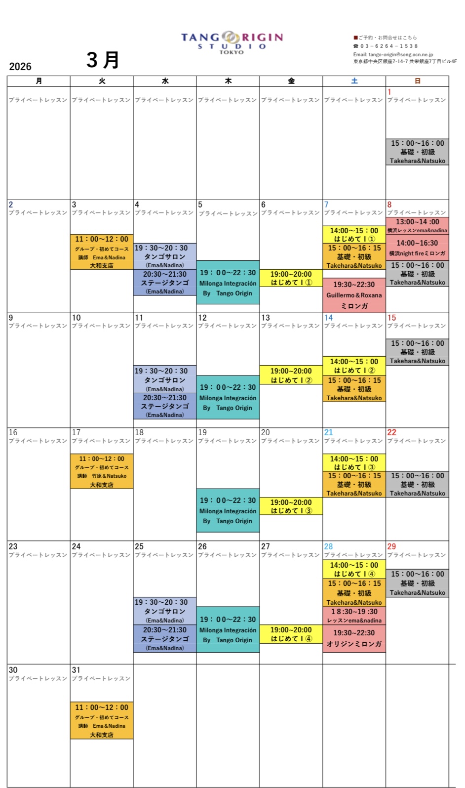 3月のレッスン日は、3&17&31日